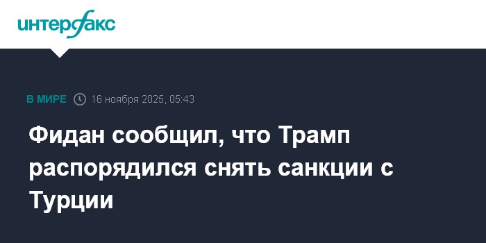 Фидан сообщил, что Трамп распорядился снять санкции с Турции