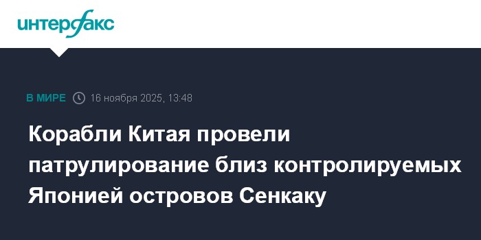 Москва. 16 ноября. INTERFAX.RU - Несколько кораблей береговой охраны Китая прошли через контролируемые Японией воды близ островов Сенкаку в Восточно-Китайском море, сообщают в воскресенье азиатские СМИ.