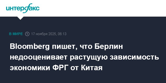Bloomberg пишет, что Берлин недооценивает растущую зависимость экономики ФРГ от Китая