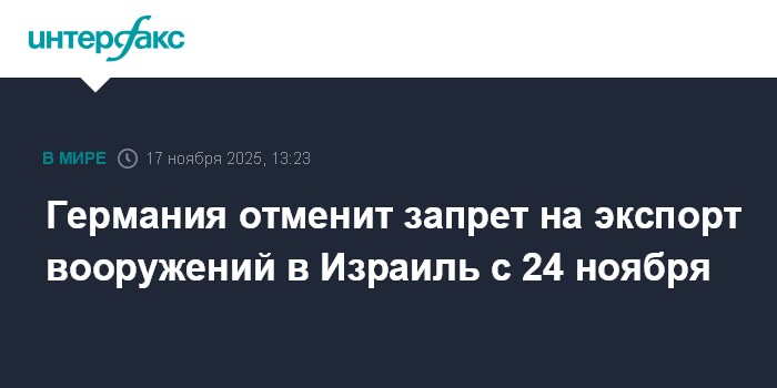 Германия отменит запрет на экспорт вооружений в Израиль с 24 ноября