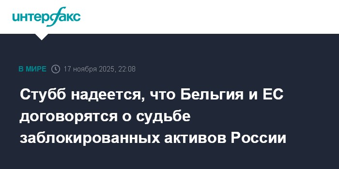 Стубб надеется, что Бельгия и ЕС договорятся о судьбе заблокированных активов России