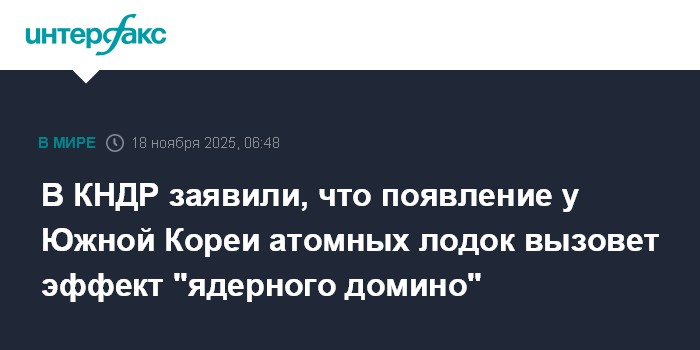 Москва. 18 ноября. INTERFAX.RU - Одобрение США стремления Южной Кореи построить атомные подводные лодки приведет к эффекту "ядерного домино" в регионе, заявляют в КНДР.