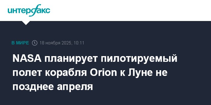 Москва. 18 ноября. INTERFAX.RU - Полет пилотируемого корабля Orion с четырьмя астронавтами на борту к Луне в рамках миссии Artemis II планируется не позднее апреля 2026 года, сообщило NASA.