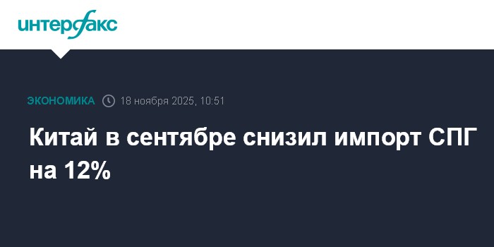 Москва. 18 ноября. INTERFAX.RU - Китай в сентябре 2025 года импортировал суммарно (по трубопроводам и в виде СПГ) 12,713 млрд куб. м природного газа, что на 7,3% ниже, чем годом ранее (13,71 млрд куб. м), сообщает Главное таможенное управления КНР.