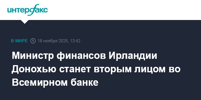 Министр финансов Ирландии Донохью станет вторым лицом во Всемирном банке