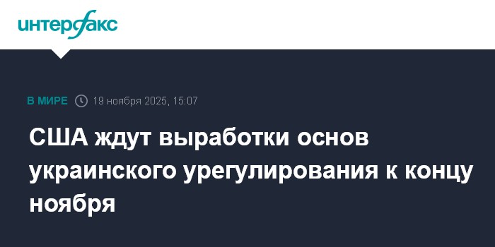 Москва. 19 ноября. INTERFAX.RU - Администрация президента США Дональда Трампа рассчитывает, что к концу ноября можно будет согласовать рамки будущего соглашения по украинскому урегулированию, сообщает Politico со ссылкой на источники.