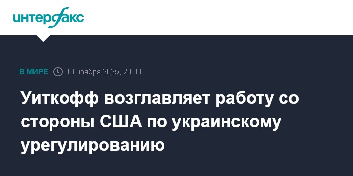 Уиткофф возглавляет работу со стороны США по украинскому урегулированию