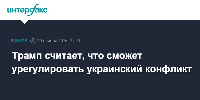 Москва. 19 ноября. INTERFAX.RU - Президент США Дональд Трамп в среду вновь выразил уверенность, что урегулирует украинский конфликт, напомнив при этом, что был разочарован подходом Москвы к этому процессу.