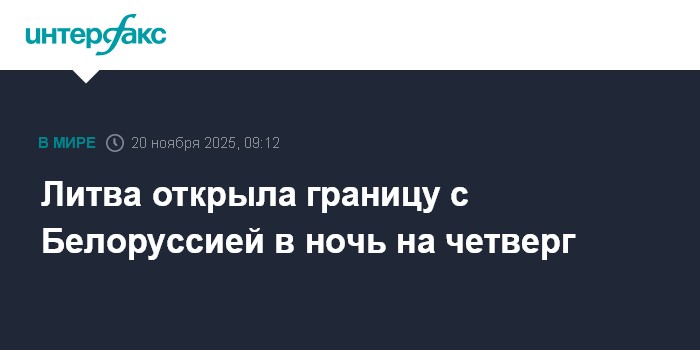 Госпогранкомитет Белоруссии вечером 19 ноября получил официальное уведомление от Службы охраны госграницы при МВД Литвы об открытии границы. Пограничная служба Белоруссии заявила о готовности к возобновлению пропуска лиц и транспортных средств на белорусско-литовском участке границы.
