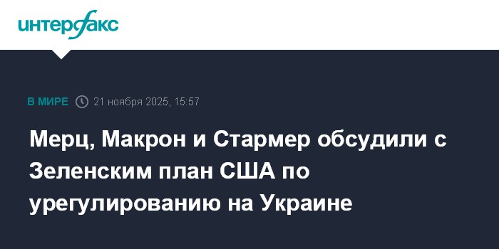 Москва. 21 ноября. INTERFAX.RU - Канцлер ФРГ Фридрих Мерц, президент Франции Эммануэль Макрон и премьер Британии Кир Стармер в пятницу в телефонной беседе с президентом Украины Владимиром Зеленским высказались в поддержку усилий США по решению украинского кризиса, заявил представитель германского правительства Штефан Корнелиус.