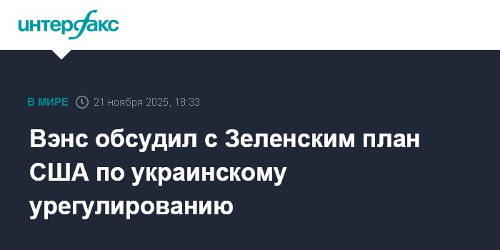 Вэнс обсудил с Зеленским план США по украинскому урегулированию