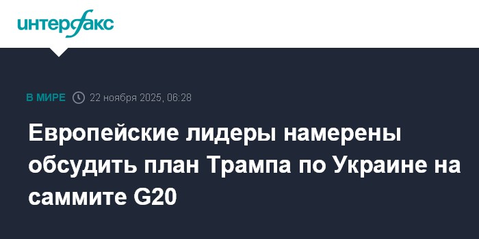 Европейские лидеры намерены обсудить план Трампа по Украине на саммите G20
