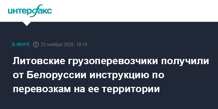 Как сообщалось, правительство Белоруссии ввело запрет на передвижение по территории республики зарегистрированных в Литве грузовиков и тягачей, это следует из опубликованного в субботу на национальном правовом портале постановления белорусского Совмина от 20 ноября 2025 года №646.