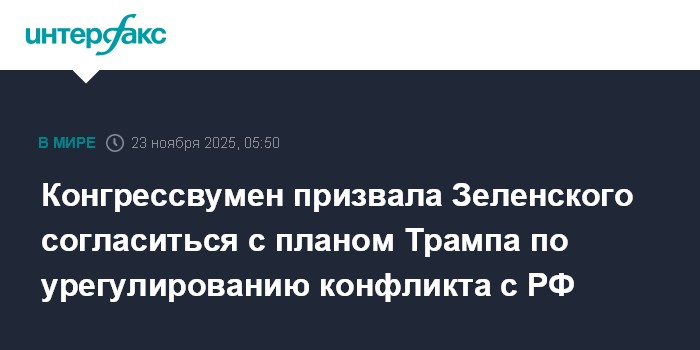 Конгрессвумен призвала Зеленского согласиться с планом Трампа по урегулированию конфликта с РФ