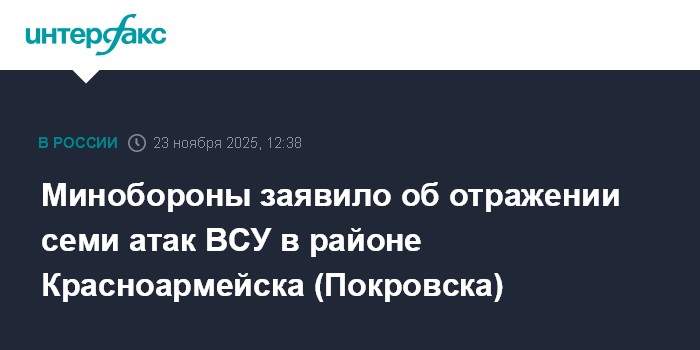 Минобороны заявило об отражении семи атак ВСУ в районе Красноармейска (Покровска)