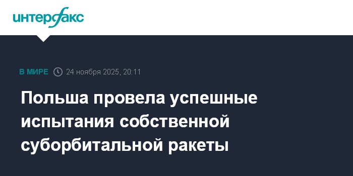 Москва. 24 ноября. INTERFAX.RU - Польша провела успешные испытания суборбитальной ракеты собственного производства, сообщил в понедельник замглавы Минобороны Цезарий Томчик.