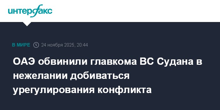 ОАЭ обвинили главкома ВС Судана в нежелании добиваться урегулирования конфликта