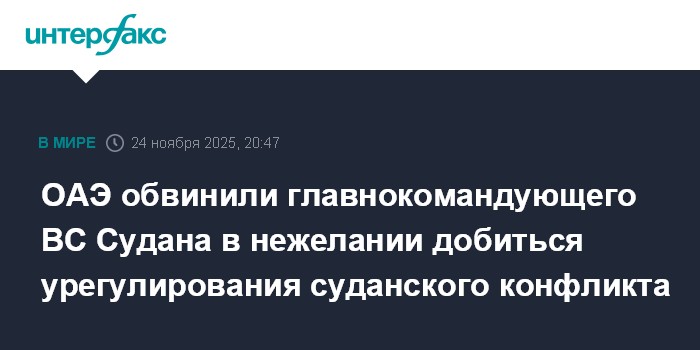 ОАЭ обвинили главнокомандующего ВС Судана в нежелании добиться урегулирования суданского конфликта