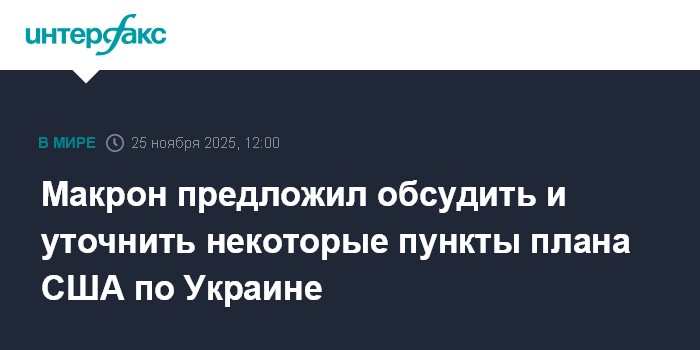 Москва. 25 ноября. INTERFAX.RU - Некоторые аспекты аспектов предложенного Вашингтоном мирного плана по урегулированию на Украине требуют изменений, заявил радио RTL президент Франции Эммануэль Макрон.