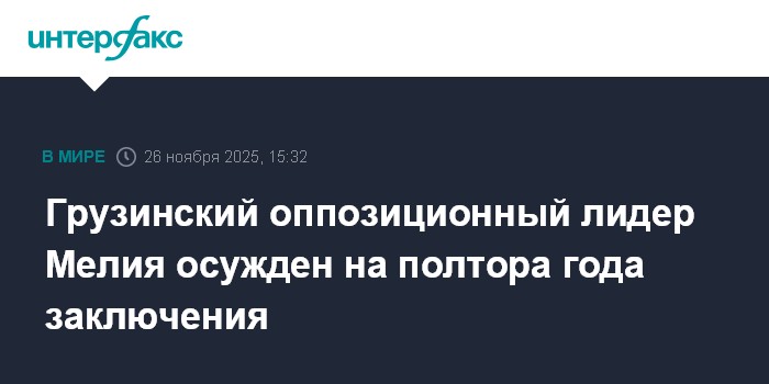 Москва. 26 ноября. INTERFAX.RU - Тбилисский городской суд признал одного из лидеров оппозиционной коалиции "За перемены" Нику Мелия виновным по статье "неуважение к суду" и приговорил его к лишению свободы сроком на полтора года.
