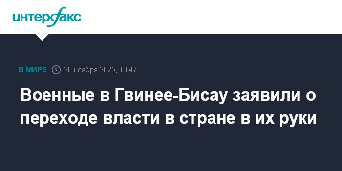 Москва. 26 ноября. INTERFAX.RU - Группа военнослужащих в Гвинее-Бисау объявила на пресс-конференции, что берет страну под контроль после прошедших президентских и парламентских выборов, передает в среду радиостанция RFI.