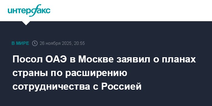 Посол ОАЭ в Москве заявил о планах страны по расширению сотрудничества с Россией