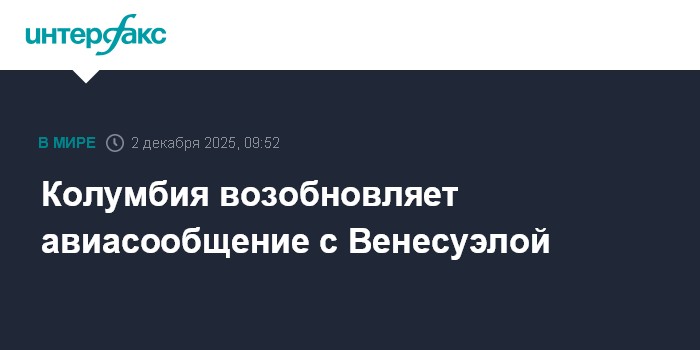 Москва. 2 декабря. INTERFAX.RU - Колумбия возобновляет воздушное сообщение с Венесуэлой после нескольких дней перерыва после заявления президента США Дональда Трампа о "закрытии воздушного пространства над Венесуэлой и вокруг нее". Об этом заявил президент Колумбии Густаво Петро, передает Globovision.