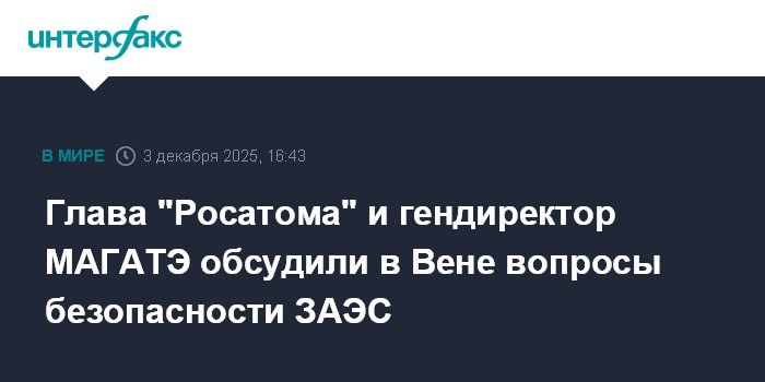 Москва. 3 декабря. INTERFAX.RU - Глава "Росатома" Алексей Лихачев и генеральный директор Международного агентства по атомной энергии (МАГАТЭ) Рафаэль Гросси провели очередные консультации в Вене, сообщила пресс-служба госкорпорации в среду.