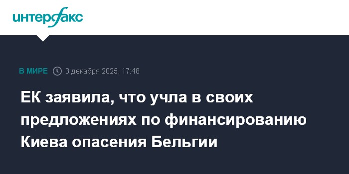 Москва. 3 декабря. INTERFAX.RU - Председатель Еврокомиссии (ЕК) Урсула фон дер Ляйен заявила, что при подготовке законодательного предложения по "репарационному кредиту" для финансирования Украины в 2026-2027 гг. учитывались обеспокоенности Бельгии относительно использования средств РФ.