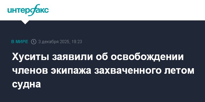Москва. 3 декабря. INTERFAX.RU - Йеменские хуситы в среду объявили об освобождении членов команды судна Eternity C, которое они захватили в июле 2025 года, сообщает Associated Press.