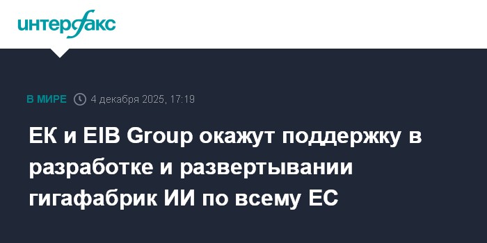 Москва. 4 декабря. INTERFAX.RU - Еврокомиссия (ЕК) и EIB Group (Европейский инвестиционный банк и Европейский инвестиционный фонд) объявили в четверг об объединении усилий для поддержки гигафабрик искусственного интеллекта.