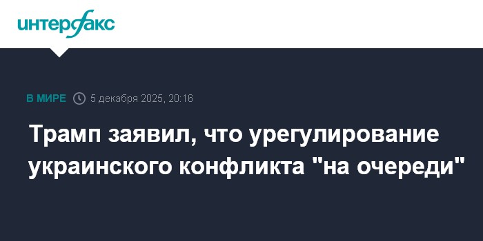 Москва. 5 декабря. INTERFAX.RU - Президент США Дональд Трамп в пятницу заявил, что рассчитывает на завершение украинского урегулирования.