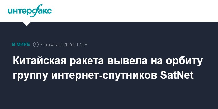 Москва. 6 декабря. INTERFAX.RU - Китайская ракета-носитель "Чанчжэн-8А" ("Великий поход-8А") в субботу вывела на орбиту очередную партию спутников SatNet для создания группировки глобального интернет-покрытия, сообщило издание China Daily.