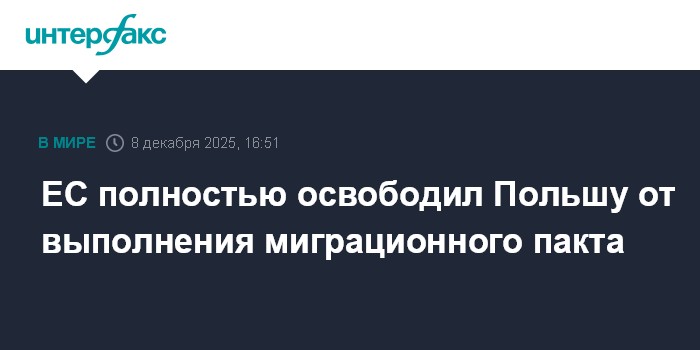 Премьер-министр Польши Дональд Туск ранее заявлял, что страна окончательно отказывается выполнять миграционный пакт ЕС. Президент Польши Кароль Навроцкий тоже обещал противодействовать реализации миграционного пакта ЕС.