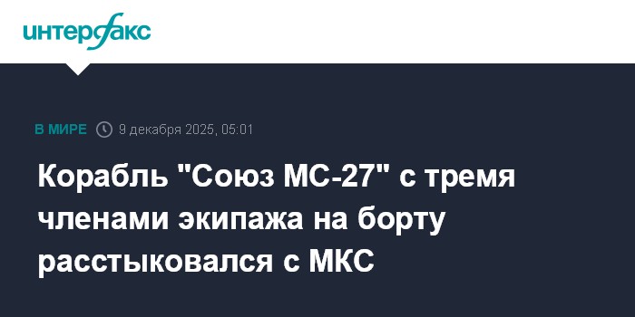 Корабль "Союз МС-27" с тремя членами экипажа на борту расстыковался с МКС