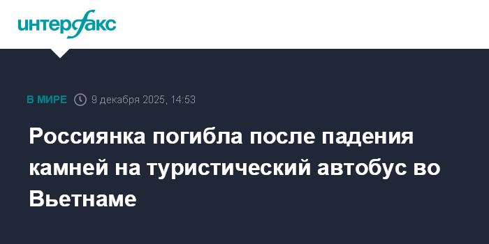Москва. 9 декабря. INTERFAX.RU - Во Вьетнаме на туристический автобус с россиянами упали каменные глыбы из проезжавшего рядом грузовика, одна туристка из РФ погибла, двое пострадали, сообщает газета VN Express.