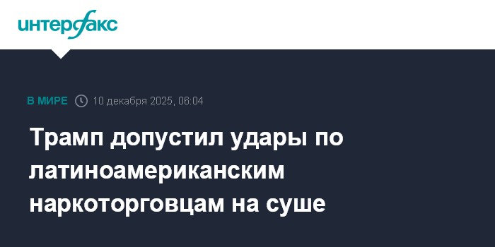 Москва. 10 декабря. INTERFAX.RU - Президент США Дональд Трамп подтвердил, что не отказывается от планов нанесения ударов по наркоторговцам на суше в Латинской Америке.