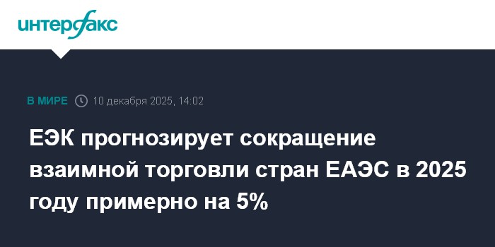 ЕЭК прогнозирует сокращение взаимной торговли стран ЕАЭС в 2025 году примерно на 5%