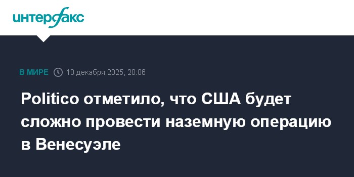 Москва. 10 декабря. INTERFAX.RU - Командованию ВС США будет непросто организовать полномасштабную сухопутную операцию в Венесуэле в случае принятия такого решения, сообщает в среду Politico.