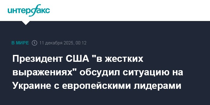 Москва. 11 декабря. INTERFAX.RU - Президент США Дональд Трамп заявил, что в "жестких выражениях" обсудил урегулирование на Украине с президентом Франции Эммануэлем Макроном, премьером Великобритании Киром Стармером и канцлером ФРГ Фридрихом Мерцем.