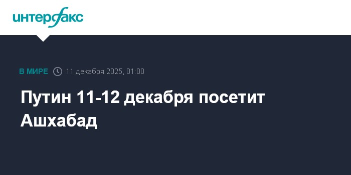 Москва. 11 декабря. INTERFAX.RU - Президент РФ Владимир Путин 11-12 декабря посетит Ашхабад для участия в форуме, посвященном Международному году мира и доверия, Международному дню нейтралитета и 30-летию постоянного нейтралитета Туркменистана, сообщила пресс-служба Кремля.