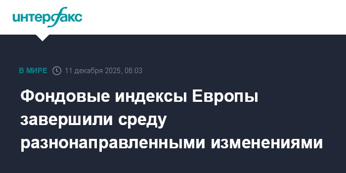 Москва. 11 декабря. INTERFAX.RU - Фондовые индексы стран Западной Европы завершили торги в среду разнонаправленными изменениями.
