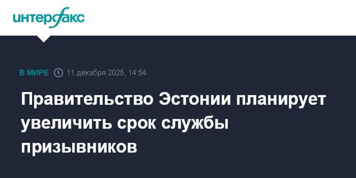 Москва. 11 декабря. INTERFAX.RU - Правительство Эстонии планирует с 2027 года увеличить срок службы до 12 месяцев для всех призывников, говорится в пояснительной записке к предложению Министерства обороны.