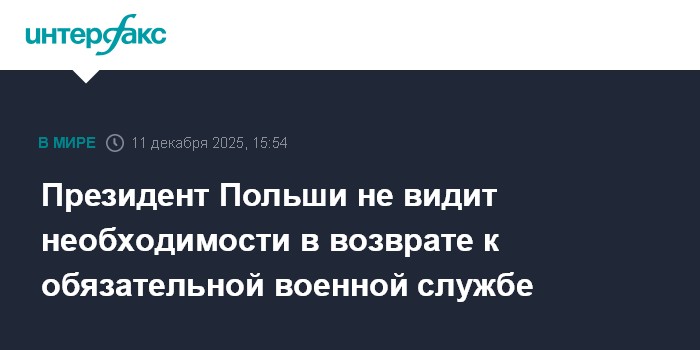 Москва. 11 декабря. INTERFAX.RU - Необходимость возобновления обязательной военной службы в Польше отсутствует, все потребности армии закрываются добровольцами, заявил в четверг журналистам президент Кароль Навроцкий.