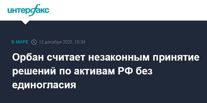 Москва. 12 декабря. INTERFAX.RU - Премьер-министр Венгрии Виктор Орбан подверг критике инициативу ЕС об изменении правил для принятия решений по замороженным активам РФ.