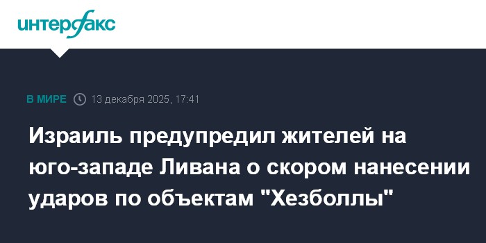 Израиль предупредил жителей на юго-западе Ливана о скором нанесении ударов по объектам "Хезболлы"