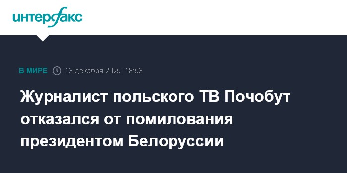 Москва. 13 декабря. INTERFAX.RU - Журналист международного канала общественного телевидения Польши Polonia, активист Союза поляков Белоруссии Анджей Почобут отказался от помилования белорусским президентом Александром Лукашенко, сообщил в субботу польский телеканал TVN24 со ссылкой на МИД Польши.