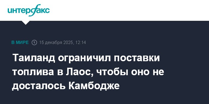 Москва. 15 декабря. INTERFAX.RU - Военные Таиланда ограничили перевозки топлива в Лаос через пограничный пункт Чонг Мек из-за опасений, что позже эти грузы могут попасть к Камбодже, с которой Таиланд продолжает обмен ударами, сообщает The Jakarta Post.