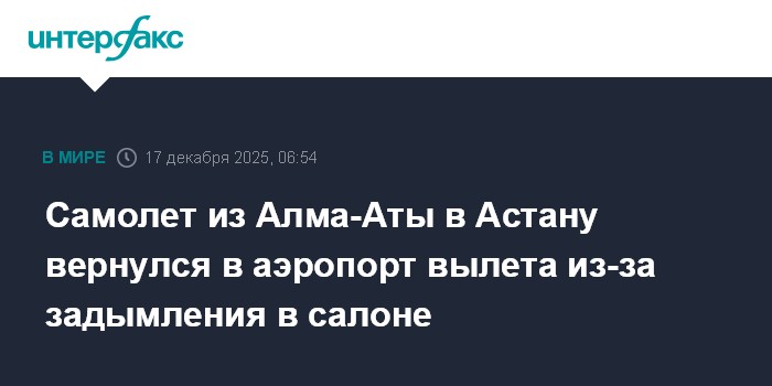 Москва. 17 декабря. INTERFAX.RU - Самолет Airbus А321N EI-KDG, выполнявший в среду рейс сообщением Алма-Ата - Астана, вернулся в аэропорт вылета после сигнала бедствия, сообщает комитет гражданской авиации (КГА) Минтранспорта Казахстана.