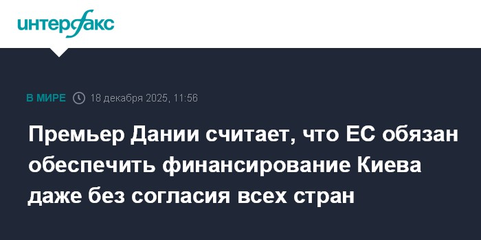 Премьер Дании считает, что ЕС обязан обеспечить финансирование Киева даже без согласия всех стран